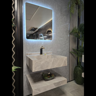 Vanitorio Porcelanato Mas Espejo Luz AntiempaÑante M Gris